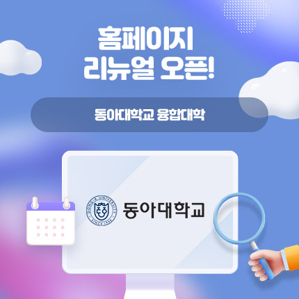 메인비주얼 동아대학교융합대학Dong-A University, College of Interdisciplinary Studies 이전 장면 다음 장면 정지 재생 공지사항 공지사항MORE 인사말 교육목표 융합전공소개 자유전공학부소개 교수진 소개 오시는길 DONG-A NEWS 공지사항 더보기 POPUP ZONE 01 이전 장면 정지 재생 다음 장면 DONG-A UNIVERSITY 동아대학교 홈페이지 동아대학교 융합대학 소개 학생들의 주도적이고 창의적인 전공 설계 및 융합교육에 중추적인 역할을 수행 VIEW MORE 갤러리 동아대학교 융합대학의 소식을 알려드립니다. PREV NEXT 정지 재생 보러가기