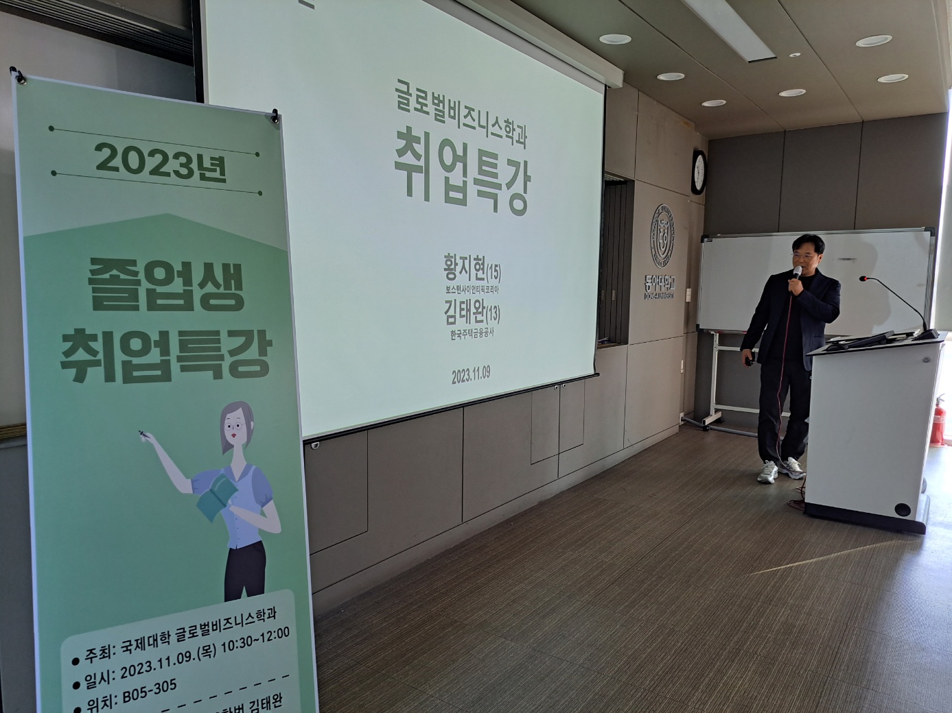 글로벌비즈니스학과에서 저학년부터 취업에 대한 관심을 유도하고자 취업특강 및 선배초청 특강을 개최하고 있습니다.