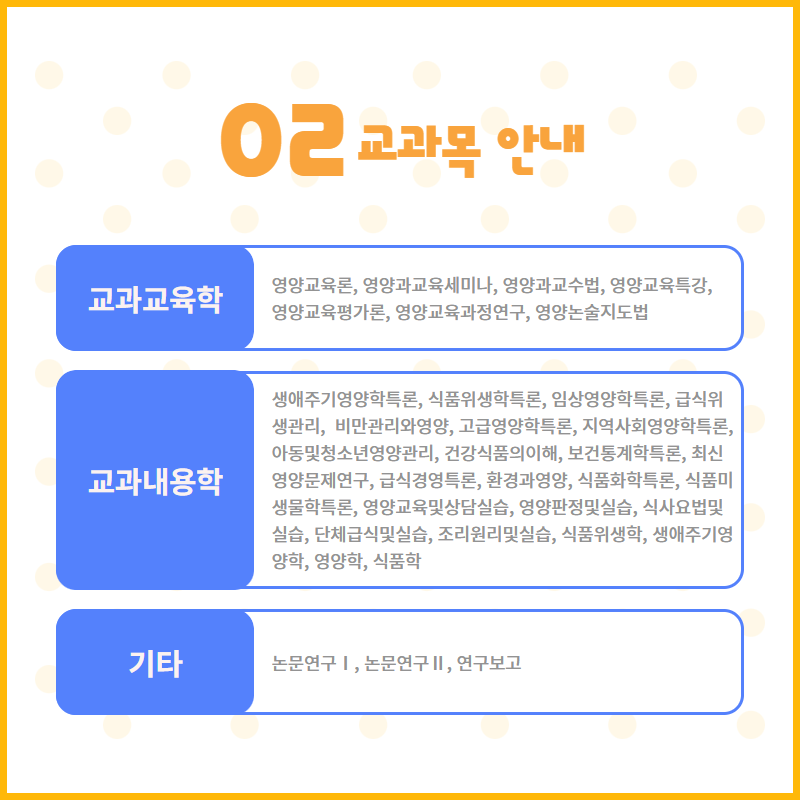 | 353302 | 생애주기영양학특론 | 2(2) | 교과내용학 |